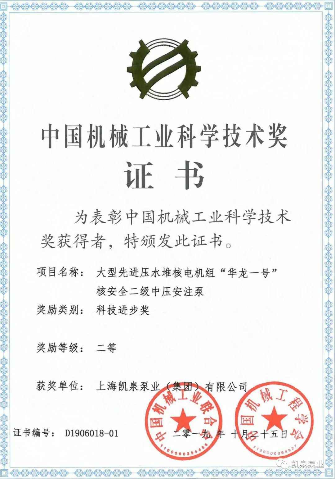 近日,开云网页版·官方版在线登入-开云(中国)与中广核工程有限公司联合研制的《大型先进压水堆核电机组“华龙一号”核安全二级中压安注泵》项目荣获中国机械工业科学技术奖——科技进步奖二等奖。大型先进压水堆核电机组“华龙一号”核安全二级中压安注泵国产化研制的成功,对发展民族工业能力,对增强我国核能装备的竞争能力都起到了一定的积极作用。另外,研制过程中一些关键技术的解决,如Q-H曲线陡降的设计方法,多工况点低比速高效和汽蚀性能优异的水力模型开发研究、泵总体结构、核级泵可靠性、先进制造工艺、涵盖加气、热冲击、杂质、高温高湿特殊环境综合试验能力及测试等关键技术,对行业的技术水平、制造能力、试验能力的提升都有一定的积极推动作用。泵结构及关键技术的运行涉及各类授权专利6项。